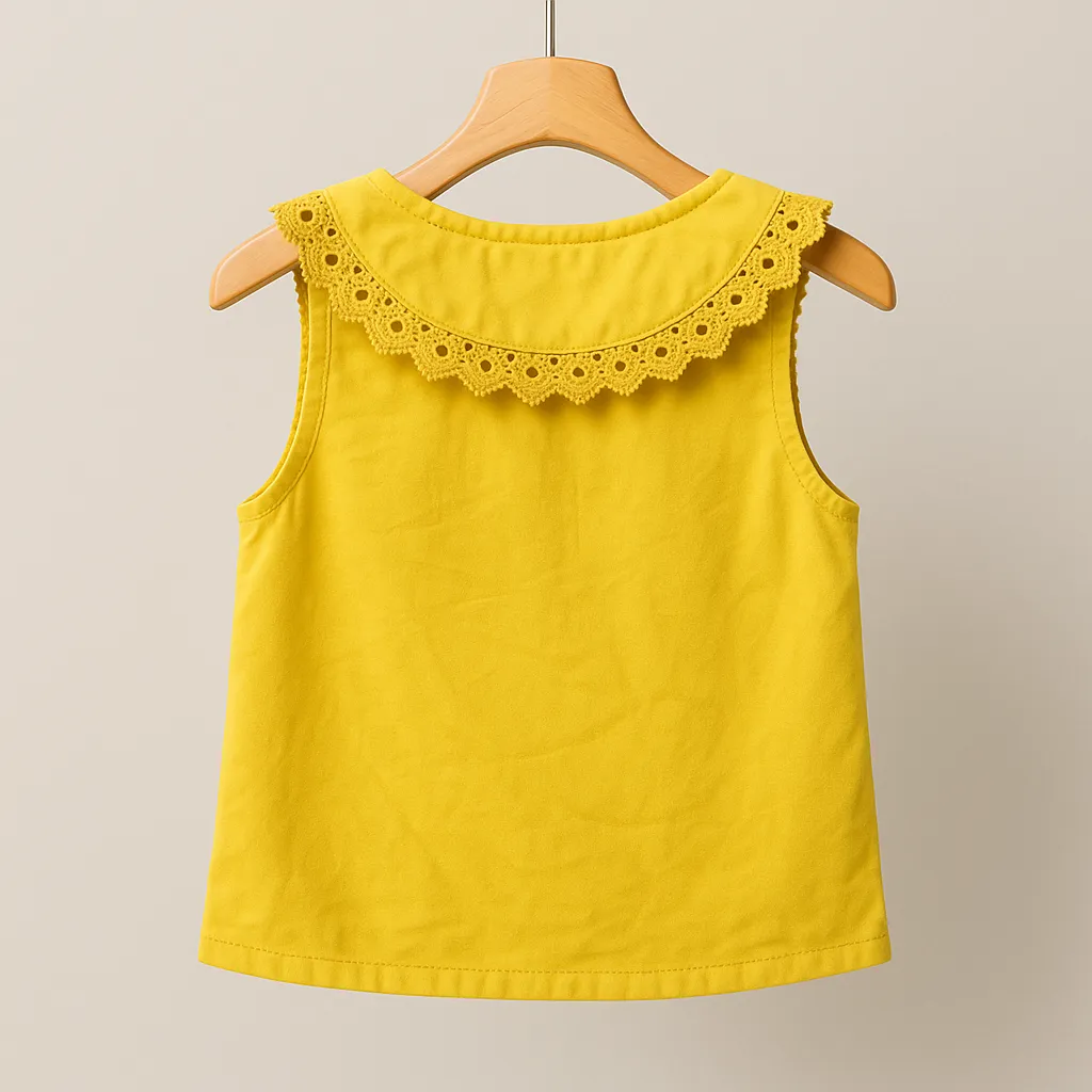 تاپ نخی یقه گیپور کد 105 با رنگ زرد لیمویی و یقه گیپور ظریف و خاص، جذابیت بینظیری برای کودکان ایجاد کرده است. مدل آستین حلقهای، مناسب فعالیت و بازی کودک بوده و یقه تزیینی گیپور، جلوهای چشمگیر به این محصول بخشیده است. یک پاپیون مشکی جذاب نیز روی یقه قرار گرفته که استایل تاپ را خاصتر میکند.