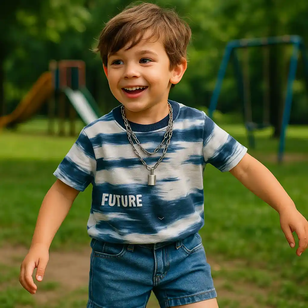 این ست اسپرت تیشرت تای دای و شلوارک جین با کفش اسپرت سفید یا صندل بچگانه ظاهری شاداب ایجاد می‌کند. برای استایل ساحلی یا تابستانی، اضافه کردن یک کلاه لبه‌دار یا عینک آفتابی کودکانه، ظاهر را کامل و جذاب می‌کند.