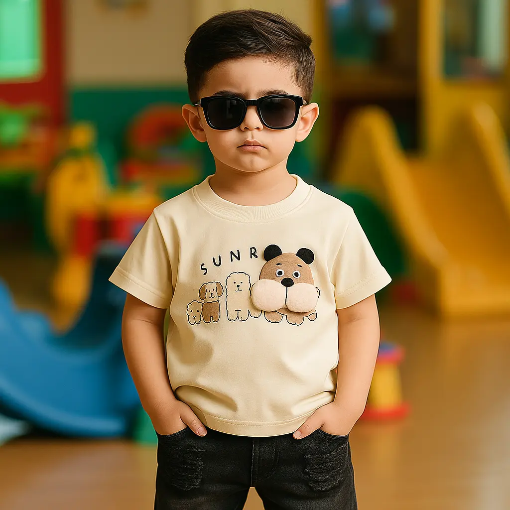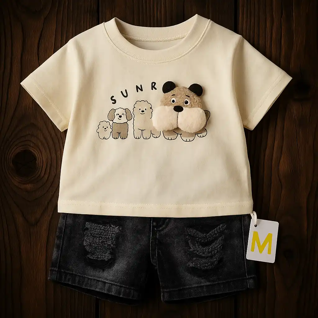 با خرید ست تابستانی تیشرت سگ و شلوارک جین مشکی از فروشگاه بچههای خاص، استایلی خاص و راحت برای کودک خود انتخاب کنید.