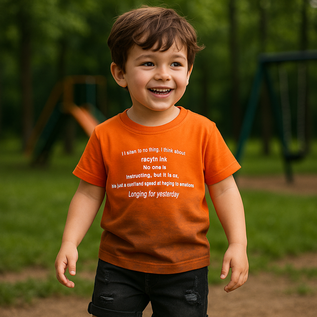 - تیشرت نارنجی با برش استاندارد برای سهولت حرکت کودک.